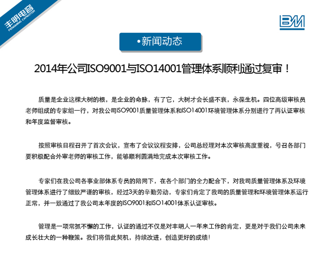 2014年公司ISO9001與ISO14001管理體系順利通過復審!
