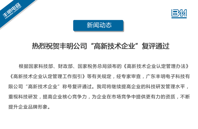熱烈祝賀豐明公司“高新技術企業”復評通過,我司將繼續提高企業的科研管理水平!