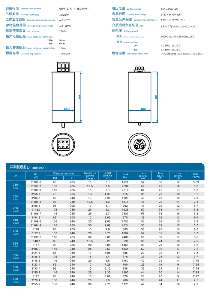 當前位置:首頁 » 工業新能源類電容 » MKP-F 交流濾波圓形鋁殼油漬式系列