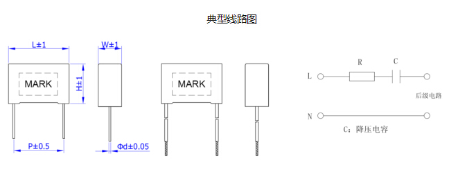 PBT塑殼、耐濕熱環氧樹脂密封、CP線引出。高耐壓、耐濕熱、低容降,專用于阻容降壓電路,如LED